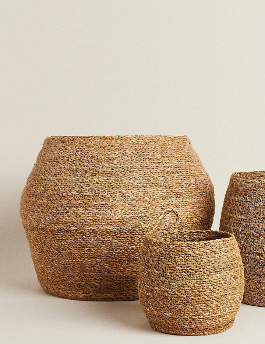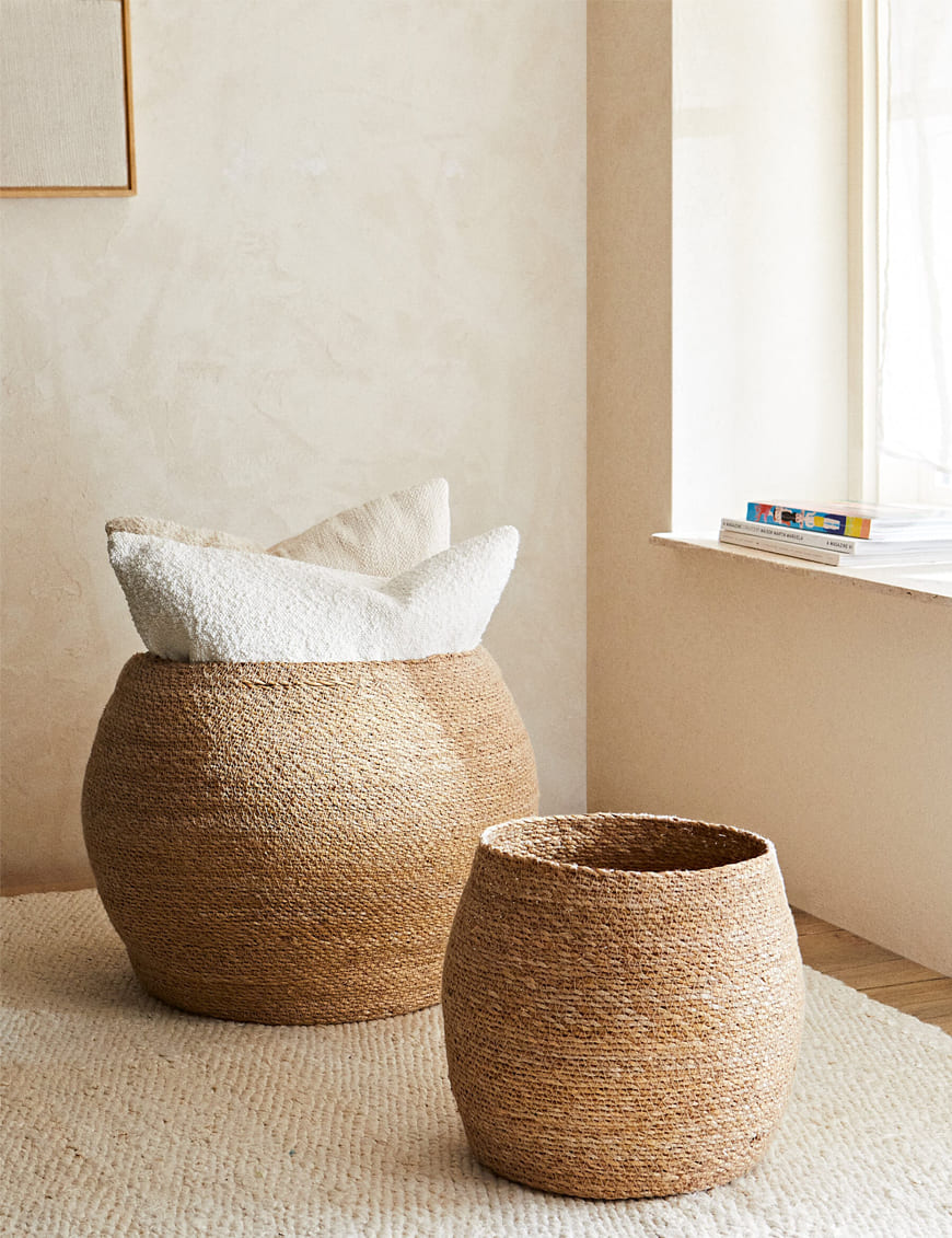 کاربرد: این سبدها چندین هدف را دنبال می‌کنند، از جمله نگهداری وسایلی مانند روانداز، مجله، اسباب‌بازی، لوازم بهداشتی یا حتی گیاهان آپارتمانی. می‌توان آنها را در اتاق نشیمن، اتاق خواب، حمام یا هر فضایی که هم به ذخیره‌سازی و هم به یک فضای طبیعی نیاز دارد، قرار داد.